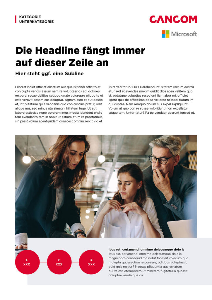 Technologiepartnerschaft, Reseller-Modell oder Kundenreferenz – CANCOM bleibt als Anbieter klar erkennbar, die Partnermarke wird je nach Kontext gleichwertig oder unterstützend eingebunden. Das CANCOM Corporate Design hat dabei immer Vorrang.